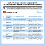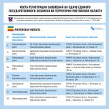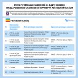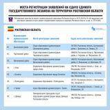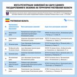 Места регистрации заявлений на сдачу экзаменов для участников ЕГЭ утверждены постановлением минобразования Ростовской области от 03.12.2019 № 10 (в ред. от 25.10.2021). Обращаем внимание, что выпускники прошлых лет могут сдавать ЕГЭ по своему желанию в любом субъекте Российской Федерации, независимо от места проживания.